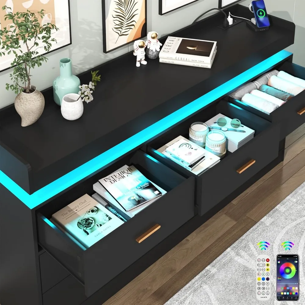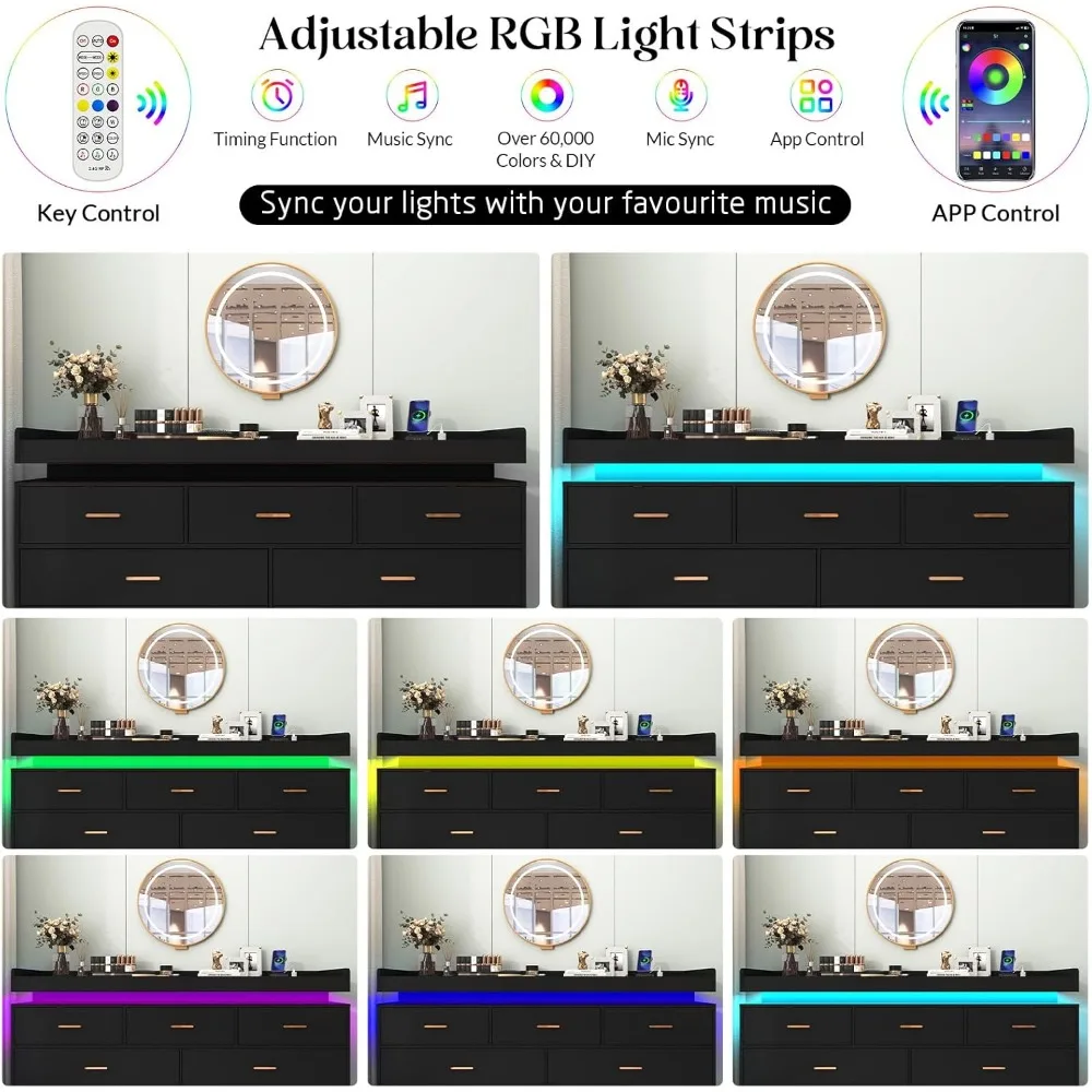 - Stylish and Contemporary Design: With its modern style and sleek appearance, this dresser adds a touch of elegance to any room. The LED light strip on the top adds a stylish and unique feature, creating a warm and inviting atmosphere.