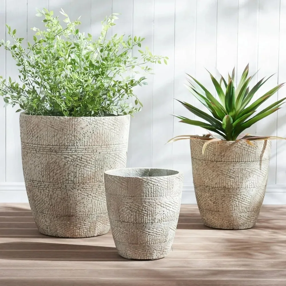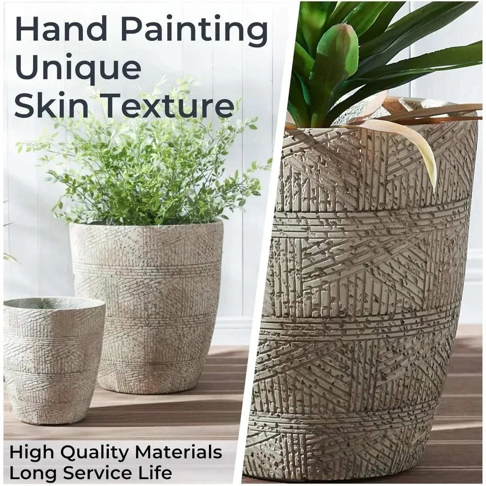 Stylish and Versatile - Whether showcasing plants indoors, or placing them on front steps, porch, or terrace, this three pieces planter set seamlessly blends modern, minimalist, and traditional decorations with its unique style and design.
