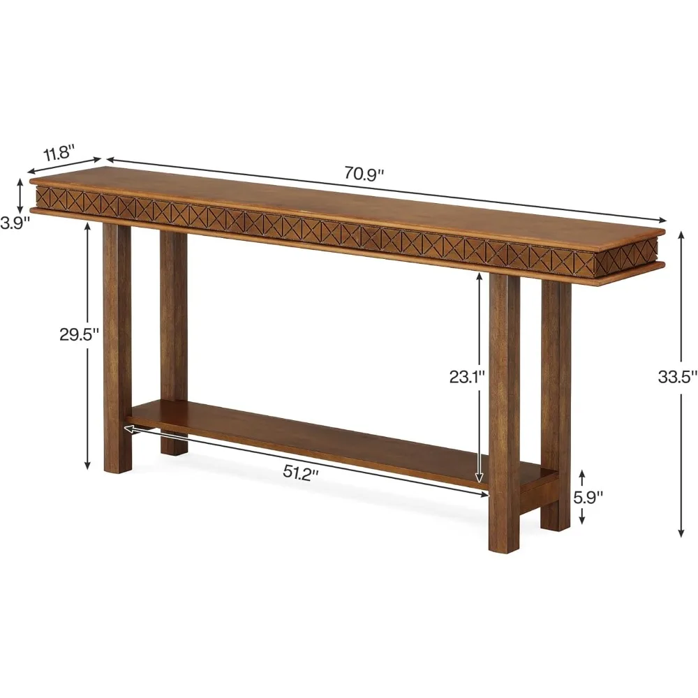 Extra Long Solid Wood Console Table 2-Tier Sofa Table Narrow Entryway Accent Table with Storage for behind Couch Customized
