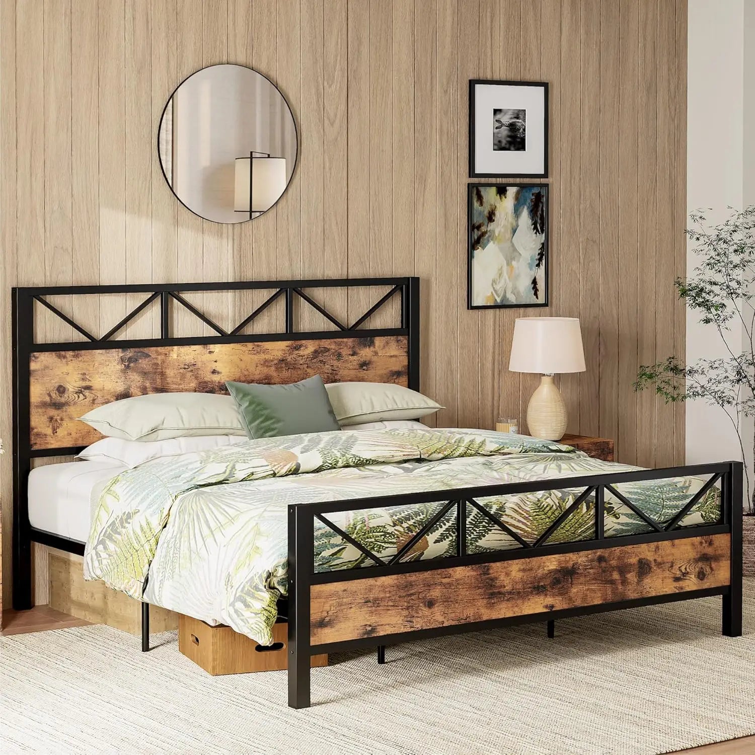 LIKIMIO Industrial Platform Bed Frame With Tall Headboard