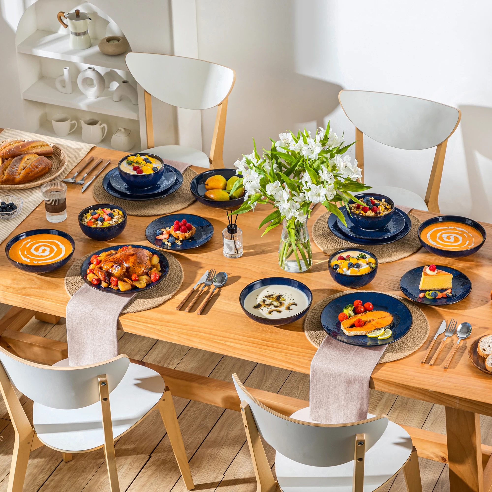 ● MALACASA dinner service sets are made of ivory white porcelain, FDA certified lead and cadmium free for everyday use. With classic square shape, making the dining table beautiful and elegant.