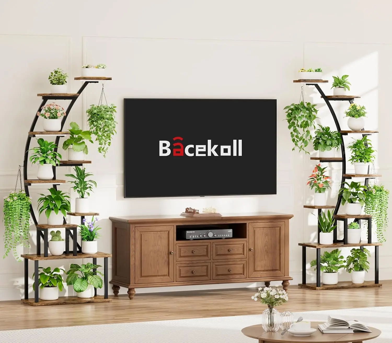 【9-Tier, 64" Elevated Plant Stand】 This 64" plant rack with increased height features 9 tiers, 18 pot stands, and 4 hanging hooks, providing you with ample storage space to display plants as much as possible. In addition, it can also serve as a display shelf for placing books, pictures, collectibles, awards, small ornaments, artworks, crafts, and more. This tall plant stand will be a creative addition to your home decor.