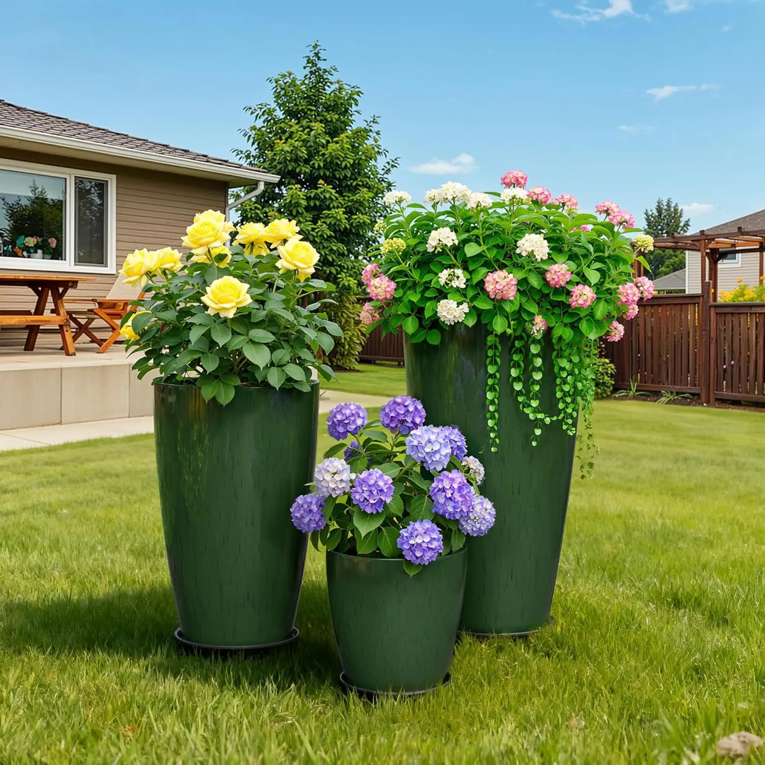 - HOME GARDEN DECOR: Set of 3 large planters are large and stable , adding stylish and elegant embellishment to front porch, patio, living room, deck, garden. Allow you to enjoy flower or plant and begin with a beautiful mood