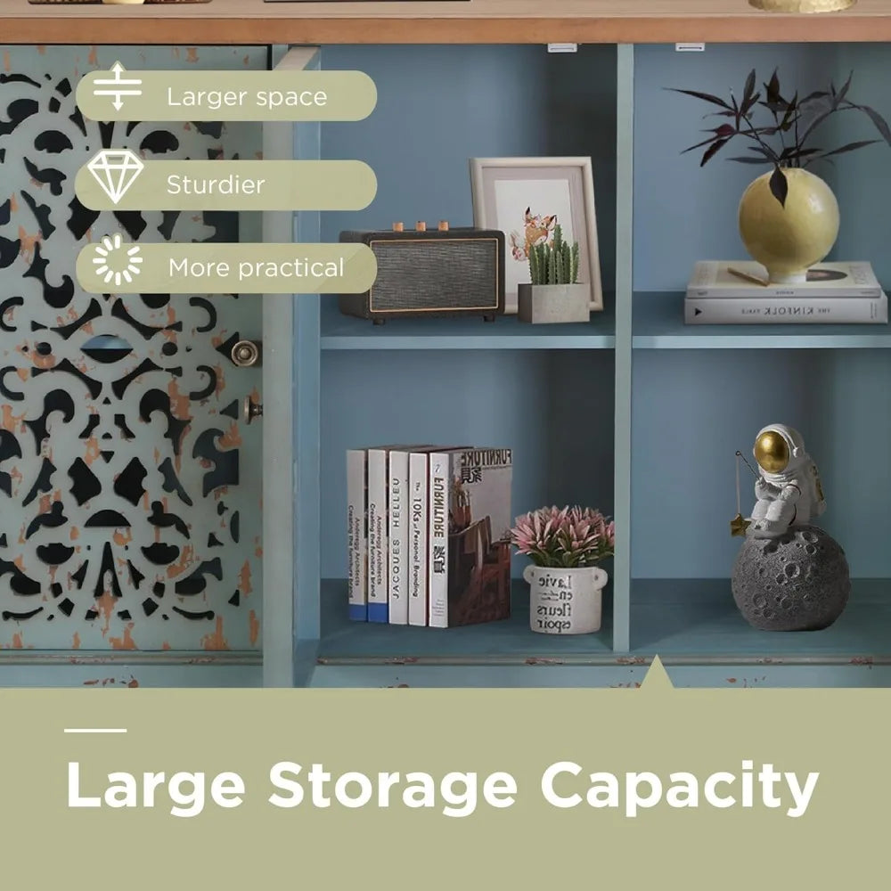 Elevate your space with a blue 3-door sideboard that blends antique charm with practical storage.