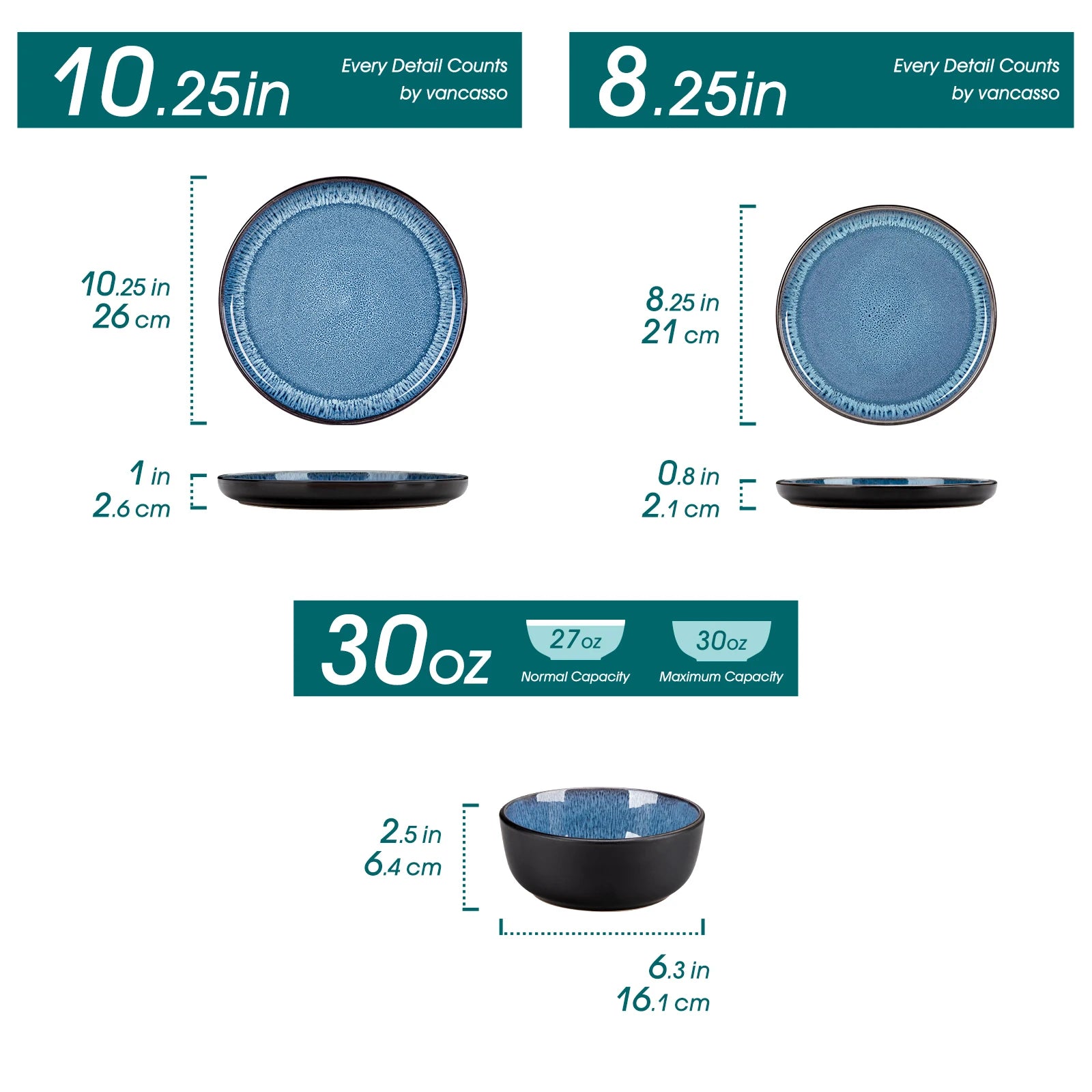 - Includes 6 dinner plates (10.25"), 6 salad plates (8.25"), and 6 bowls (30 oz) to cover a full 6-place setting for everyday meals or special occasions.